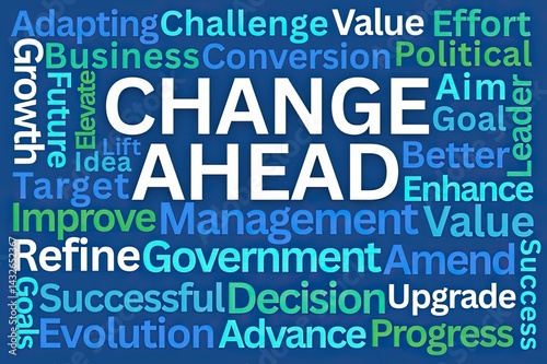 Change Ahead Word Cloud on Blue Background
