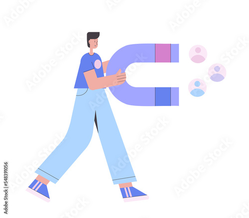 magnet, marketing, client, client, best, success, find, lead, post, target, plan, company, brand, funnel, choice, strategy, cyberspace, network, share, communication, social, technology, follow, advertising, audience, campaign, media, design, digital, web, person, influence, like, concept, flat, vector, follower, business, cartoon, online, illustration, promotion, people, character, attract, man
