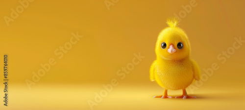 Characteristic cute chicks, yellow background.特徴的な可愛い雛、黄色い背景。Generative AI