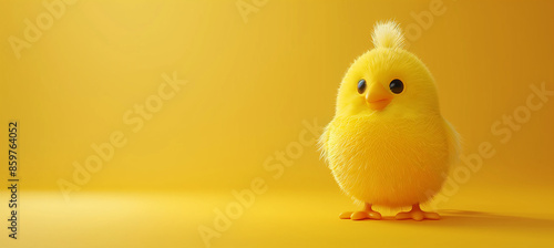 Characteristic cute chicks, yellow background.特徴的な可愛い雛、黄色い背景。Generative AI