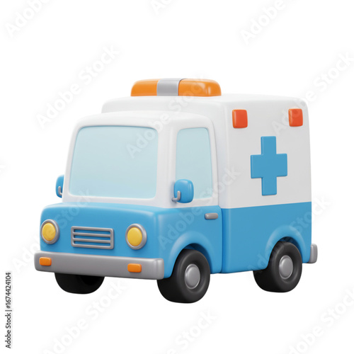 ambulance, cartoon, illustration, medicals, emergency, vehicle, transport, health care, hospital, rescue, aid, help, service, first aid, paramedic, doctor, nurse, patient, sick, injured, treatment, care, safety, protection, assistance, response, siren, light, blue, white, cross, symbol, icon, graphic, design, clip art, vector, three-dimensional, rendering, cute, adorable, childlike, playful, simple, clean, isolated, black background, transportation