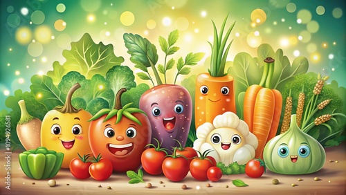 vegetable, cartoon, healthy eating, children, vegetarian, carrot, cucumber, lettuce, pepper, onion, garlic, playful, hand-drawn, diet, farm, colourful, whimsical, bokeh, illustration, nourishment, fun, organic, fresh, educational, artistic, vibrant, cheerful, healthy lifestyle, farm fresh, creative, cute, wholesome, dietary, diverse, engaging, imaginative