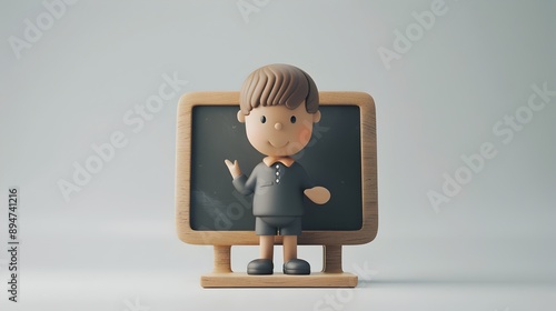 clay, teacher, blackboard, full body, white background, three-dimensional, education, instructor, classroom, teaching, drawing, vignetting, cartoon, art, design, icon, avatar, character, figure, model, object, render, graphic, school, lesson, student