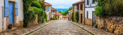 Charming cobblestone street in picturesque village with stone houses