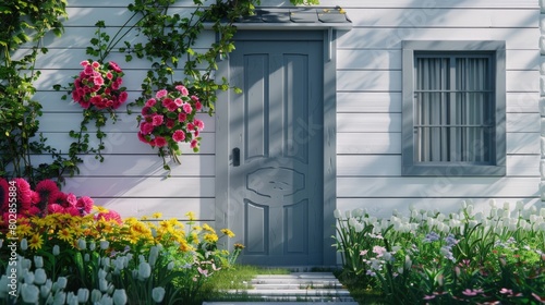 Charming Cottage Front Door with Blossoming Flowers