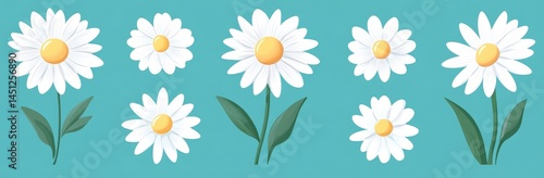 daisy, flower, floral, illustration, design, art, white, yellow, teal, background, simple, elegant, charming, peaceful, serene, calm, botanical, nature, spring, summer, pretty, aesthetic, graphic, image, pattern, border, cute, sweet, delicate, soft, pastel, vector, clip art, print, commercial, template, element, stock, seamless, repeat, download, purchase