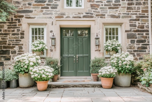 entrance, house, stone, green, door, hydrangea, flower, pot, landscaping, home, exterior, calmness, greenery, decorative, welcoming, nature, architecture, residential, garden, charme, design, floral, peaceful, pot, plant, facades, rustic, suppressing, attracted, seasonal, inviting, aesthetic, serenity, lifestyle, blossom, decoration, contemporary, style, soft, colours, timeless, suburban, beauty, window, wall, flower, building, street