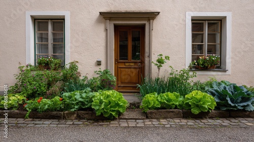 door, entrance, house, garden, flower, plant, greenery, vegetable, home, architecture, brick, stone, pathway, residential, summer, bright, colourful, rustic, calm, peaceful, natural, landscaping, design, kitchen, lifestyle, decor, suppressing, inviting, vibrant, charme, neighbourhood, quaint, europa, environment, environmentally friendly, horticulture, gardening, scenic, tranquil, beauty, foliage, cultivation, nature, urban