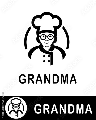 grandmother, chef, logotype, design, bakery, homemade, food, branding, culinary, goggles, hat, elderly, woman, charming, classic, business, cooking, professional, eatery, identity, kitchen, vector, illustration, creative, simple, modern, unique, friendly, icon, graphic, stylish, people, symbol, cartoon, silhouette, signs, person, head