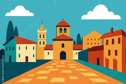 Charming Italian Village A Colorful Architectural Illustration of a Picturesque Town