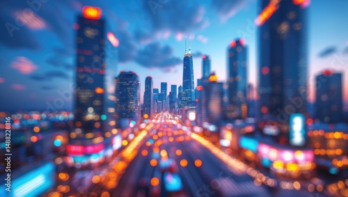 Charming metropolitan landscape adorned with bokeh of bright lights
