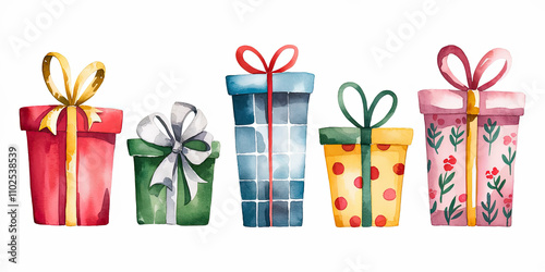 Charming watercolor illustration of five different houseplants