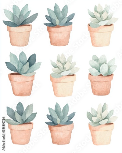 charming, watercolor, illustration, succulent, plant, pot, collection, green, nature, botanical, art, floral, leaf, decorative, home, indoor, design, aesthetic, minimal, vibrant, texture, background, simple, light, soft, earth, hue, rustic, organic, arrangement, studio, vertical, artistic, creative, colours, pattern, cute, bright, fresh, visual, greenery, modern, tranquil, elegant, unique, playful, seasonal, environmentally friendly