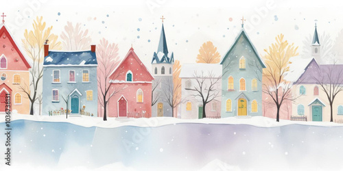 winter, village, snow, house, pastel, landscape, illustration, charming, architecture, tree, winterly, cosy, snowfall, scene, rooftop, church, outdoors, snowy, building, design, artwork, town, neighbourhood, peaceful, soft, weather, quiet, artist, frost, idylli, street, scenic, seasonal, window, nostalgic, glacé, chimney, unique, delicate, cold, chill, tradition, serene, gentle, stillness, vibrant