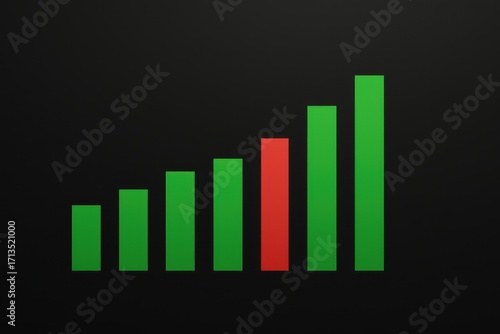 Chart showing growth and decline with green and red bars on a black background demonstrating financial performance and business trends