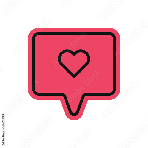 Chat bubble and heart symbol design with pink color. Simple flat illustration vector sticker or element.