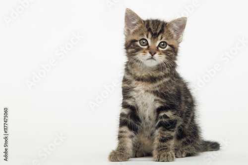 pretty, seated, cat, kitten, animal, pet, isolated, domestic, felino, pretty, tabby cat, mammal, adorable, baby, young, baby, beauty, studio, white background