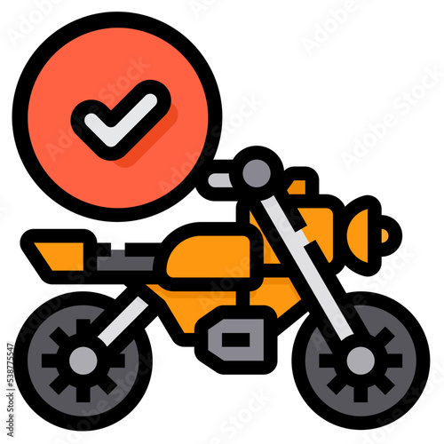 check, verification, motorcycle, vehicle, automobile, icon, line, linear, colours, outline, graphic, illustration