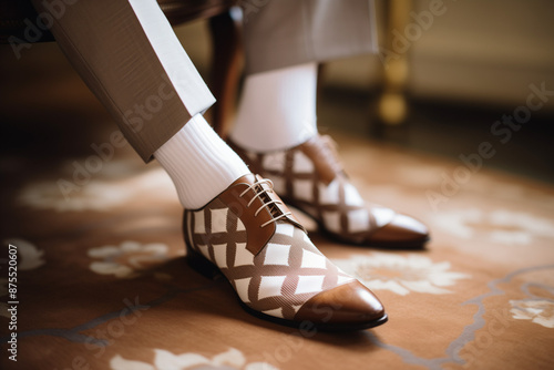 shoe, chequered, pattern, wedding, groom, fashion, detail, stylish, unique, elegant, creative, man, attire, accessory, fun, chic, modern, decoration, beauty, trendy, footwear, masculine, morning, preparation, bold, celebration, marriage, artistic, design, colourful, playful, light