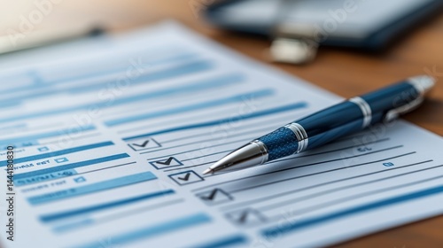 checklist, document, pen, task, progress, tracking, organised, planning, business, financial, analysis, datum, report, graph, chart, statistic, management, productivity, efficiency, goal, objective, monitoring, compliance, form, paper, list, item, box, marked, complete, incomplete, blue, metal, wooden, desk, office, work, strategy, action, detail, review, evaluation, result, performance, success
