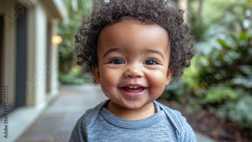 baby, toddler, african american, children, boy, smiling, looking, smile, joy, happiness, innocence, cute, adorable, portrait, childhood, fun, playful, dimple, expression, positive, cheerful, natural light, closeup, face, young, infant, sweet, charming, delightful, happy, laughing, curly hair, head shot, eye, little, children, summer, park, hair