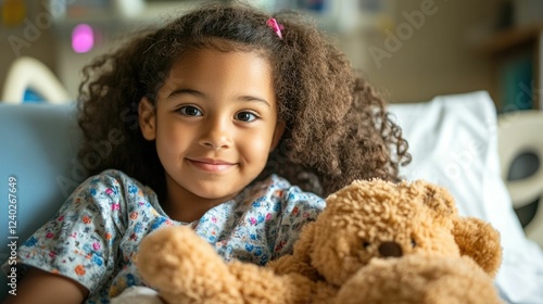 children, girl, treatment, care, cancer, hospital, teddy, stuffed, toy, smile, happy, cheerful, indoor, cosy, comfortable, health care, pediatric, oncology, medicals, wellness, recovery, support, encouragement, positivity, relaxation, innocence, childhood, patient, healing, hopeful, resilience, kindness, compassion, well-being, nurturing, comfort, joy, playfulness, therapeutic, empathy, solace, soothing, optimism