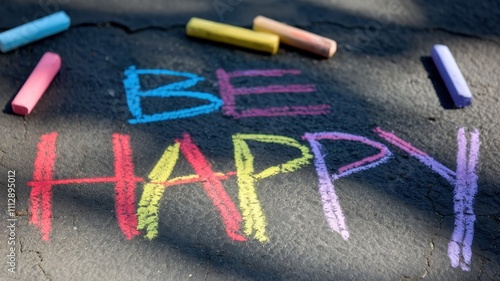 Cheerful Be Happy Chalk Message Written in Colorful Letters on Sidewalk