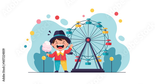 ferris, wheel, children, cotton, candy, amusement, park, cartoon, happy, fun, fair, illustration, vector, design, character, lifestyle, joy, childhood, sugar, sweet, snack, treat, festival, celebration, holiday, recreation, leisure, entertainment, happiness, colourful, drawing, graphic, joyful, smiling, cheerful, casual attire, excited, positive, bright, style, young, funny, carnival