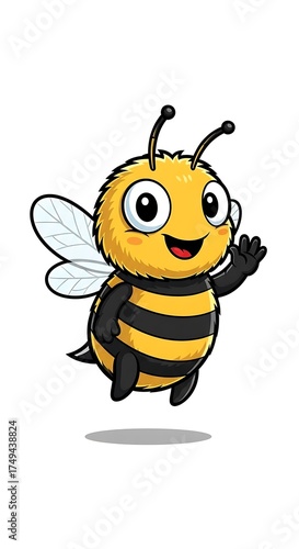 Cheerful Cartoon Bee Waving Hello with a Friendly Smile.