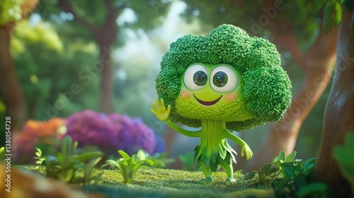 broccoli, cartoon, character, cute, animated, cheerful, nature, forest, greenery, smiling, whimsical, happy, playful, vibrant, background, friends, plush, vegetable, healthy, design, fantasy, fun, colourful, tree, foliage, adorable, landscape, joyful, charming, friendly, green, bright, environment, creativity, imagination, organic, animation, art