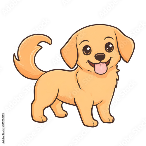 Cheerful Cartoon Style Golden Retriever Puppy With Wagging Tail on Isolated White Background
