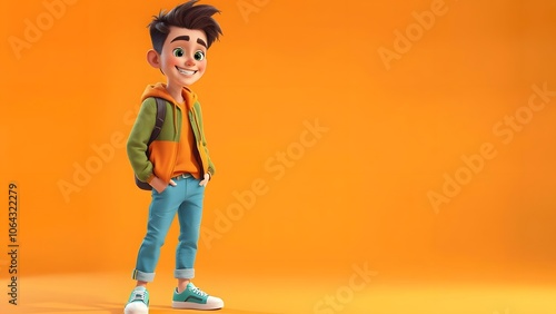 Cheerful Cartoon Young Man in Casual Attire Smiling Cartoon Man in Modern Outfit Friendly Cartoon Male Character Full Body Cute Cartoon Boy in Playful Pose Stylish Cartoon Man with Confident Expressio