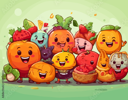 Cheerful Food Mascots: Vibrant Cartoon Characters for Digital Content
