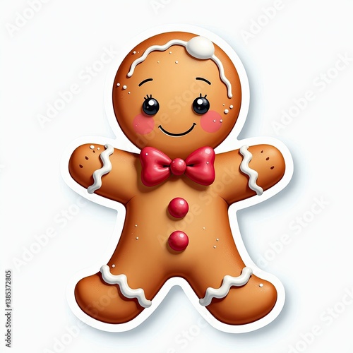 Cheerful gingerbread character decorated with icing and a red bow