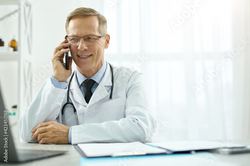 man, doctor, hospital, adult, medicals, clinic, mobile phone, smartphone, mobile, phone, call, talk, communication, phone, caucasian, male, laptop, notebook, health, physician, health care, men at work, online, medicine, photogenic, professional, stethoscope, smile, portable, device, contraption, modern, technology, cheerful, smiling, joyful, display, screen, conversation, work, copy space, white, background, isolated, website, template, banner