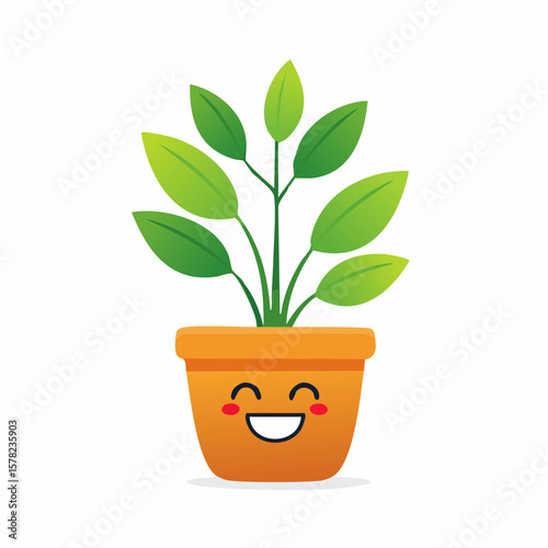 plant, potted, pot, green, leaf, happy, smiling, face, cartoon, illustration, cheerful, cute, adorable, nature, growth, life, spring, summer, garden, home, decoration, design, graphic, vibrant, fresh, healthy, wellness, positivity, joy, fun, playful, friendly, character, expression, emotion, feeling, well-being, happiness, optimism, bright, light, simple, clean, modern, style, art, drawing, vignetting