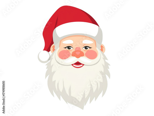 Cheerful Santa Claus head smiling warmly with a fluffy white beard and a red hat, spreading holiday joy and Christmas spirit, perfect for festive designs and seasonal greetings