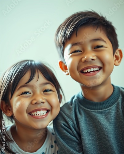 Cheerful Siblings Smiling Together in a Bright Indoor Setting
