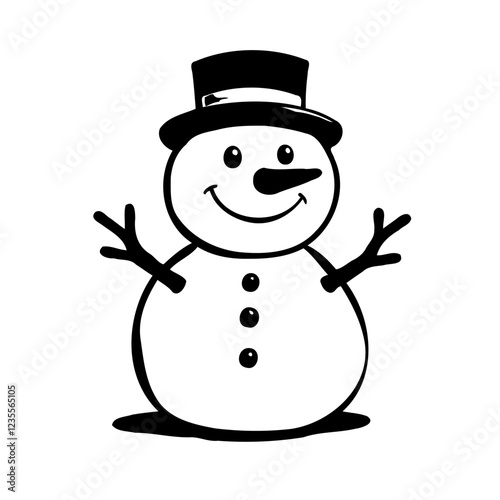 snowman, winter, holiday, christmas, snow, cartoon, cute, happy, hat, cold, frosty, december, new, year, christmas, celebration, season, festive, drawing, graphic, icon, art, illustration, character, design, isolated, outline, simple, vector, clip, black, white, line, minimal, funny, traditional, decoration, greeting, card, cheerful, silhouette