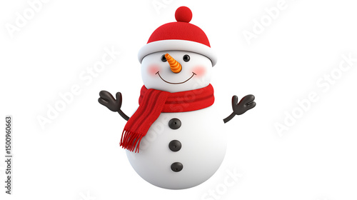 Cheerful Snowman in Red Hat and Scarf Perfect for Winter Holiday Greetings Cards and Festive Designs
