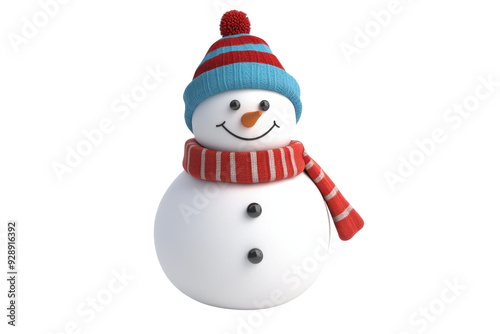 Cheerful snowman wearing a striped hat and scarf, perfect for winter holiday and Christmas themed designs and decorations.