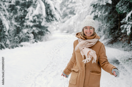 woman, enjoying, snowy, walk, outdoors, happiness, smiling, copy space, 1, people, sport, adult, children, girl, jacket, maturing, forest, nature, winter, clothes, warm, clothing, tree, plant, snow-covered, life, quality, walking, season, lifestyle, snow, weather, peace, happy, caucasian, hat, casual attire, foulard, coat, path, scenic, strolling, scenic, hut, building, female, mature