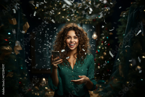 new year, succeed, woman, large, christmas, mobile, phone, celebration, confetti, cheerful, good news, winning, excitement, joyful, happy, festive, smartphone, achievement, party, festivity, celebratory, triumph, atmosphere, portrait, screen, celebrate, event, moment, shower, device, rejoicing, jubilation, rejoice, delight, positive, celebrate, mood, display, elation, victory, expression, emotion, joy, online, people, prize, success