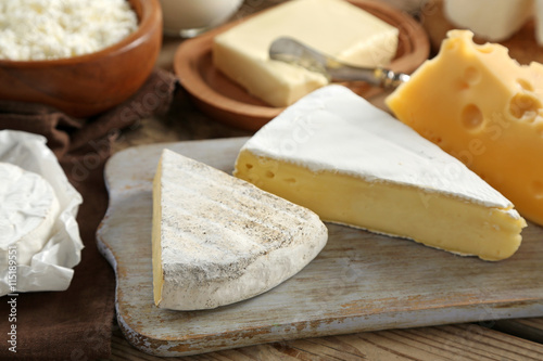 Cheese on wooden cutting board