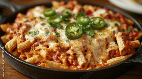 pasta, bake, cheesy, chili, pepper, mexican, sauce, food, dish, meal, dinner, comfort, delicious, hot, spicey, creamy, melted, cheese, topping, sauteed, meat, protein, carb, baked, oven, frying pan, cast iron, ingredient, prepared, ready, serving, deliciously, flavorful, warm, dinnerware, tasty, appetising, easy, simple, comfort food, ready-to-eat