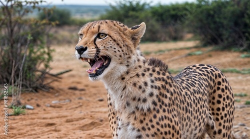 africa, elegance, horizon, horizontal, photo, safari, standing, watching, alertness, camouflage, cheetah, color image, copy space, looking, spotted, sunlight, kenya, savanna, travel destination, animal, grass, looking away, nature, one animal, outdoors, half face, tranquil scene, vibrant color, environment, orange color