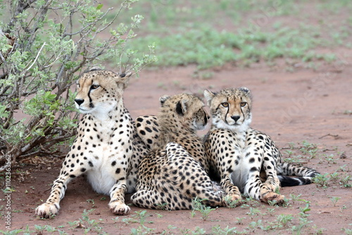Cheetah family lying down and licking each other in Botswana while on safari