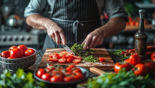 culinary, chef, tomatoes, chopping, freshness, skill, cutting, fresh, cooking, vegetable, kitchen, healthy, chopping board, knife, bell pepper, herb, preparation, ingredient, gastronomy, hand, organic, cookery, healthy eating, sharpened, slicing, culinary arts, food, epicure, home cooking, wooden board, vibrant, hand-made, nourishment, domestic, vegetarian, craftsmanship, alimentary, meal, raw