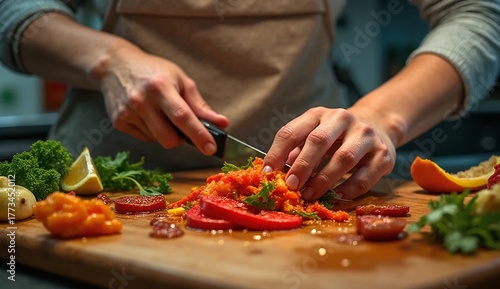 cooking, kitchen, chef, food, vegetable, healthy, fresh, knife, cutting, tomatoes, pepper, herb, salad, preparation, meal, diet, vegetarian, organic, lifestyle, culinary, colourful, wooden, board, natural, hand, freshness, homemade, nourishment, epicure, ingredient, delicious, slicing, receipe, vegan, home cooking, lunch, dinner, wellness, chopping, raw, rustic, domestic, cook
