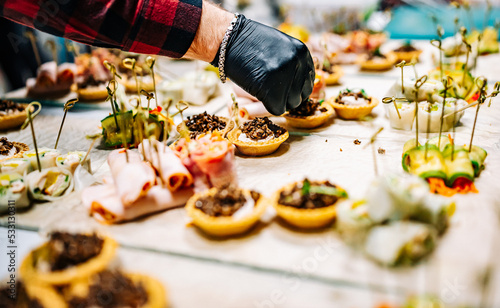 catering, service, chef, cooking, kitchen, food, people, hand, table, party, eatery, black, vegetable, work, bread, menu, healthy, plate, sandwich, event, board, meal, cookery, snack, epicure, lunch, decoration, culinary, buffet, staff, canape, glove, starter, professional, prepare, preparation, tartlet, different, making, canape, finger food, receipe, serving, holding, cook, many, various